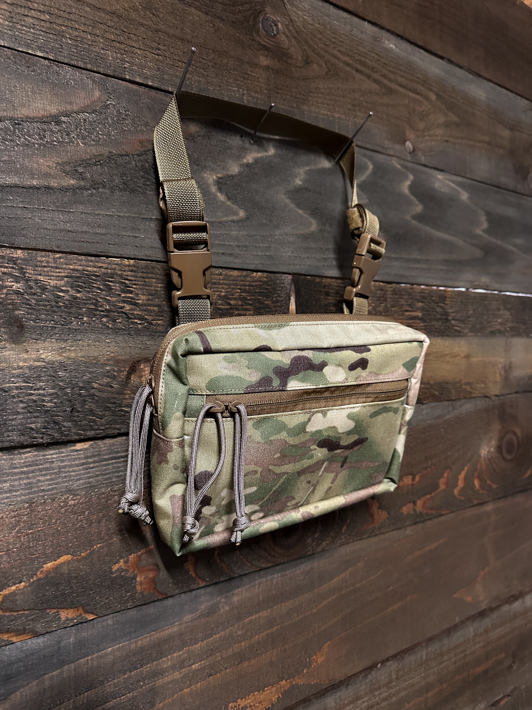 The Scrambler Pouch reclaims the wasted dead space behind the headrest of your seat, adding another layer of storage without sacrificing cabin volume. It was made for the demands of overland builds, trail rigs and the everyday vehicle, it features a large primary zipper compartment paired with a slim front pocket for documents or small tools. Three soft d-rings along the bottom offer quick and easy access to gear you want stored and organized externally. Removable with dual buckle mounting points on each side, the pouch is ambidextrous when you need your kit on the move and in a hurry. This design allows for a clean dismount in seconds, making it a true grab and go solution. The Scrambler functions as a modular gear bag for kitting out your vehicle with a concealed storage layer within arm's reach.